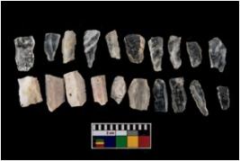 | Description / विवरण | There are n 20 bladelets chipped from quartz with most of them having an irregular flaking pattern. The edged show a little damage causing them to lose most of the sharpness. Most of them have been flaked with just one percussion blow. |