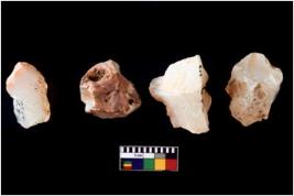| Description / विवरण | Four worked utilised cores from which blades removed from almost all the sides. |