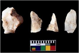 | Description / विवरण | Four utilised worked cores with sharp edges. Flakes have been removed from few sides. |