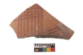 | Description / विवरण | Specimen of red ware with decorative geometric Linear Pattern painting. |