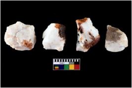 | Description / विवरण | Four utilised worked cores with sharp edges. Flakes have been removed from few sides. |