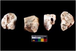 | Description / विवरण | Four worked utilised cores from which blades removed from almost all the sides. |