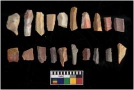 | Description / विवरण | There are n 20 objects of which 14 are Blades and the rest appear as debitages. The blades have parallel scars along the edges with less or no retouchings. The surfaces are intact with no visible sign od damage. A few of the debitages appear as blade cores. |