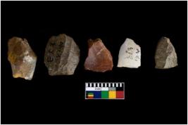 | Description / विवरण | There are n-4 of cores. Out of them 4 are made up of Chert and 1 is made up of Quartz. All of them are intact fully fluted cores without any trace of crested ridge flakes. |