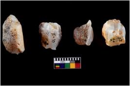| Description / विवरण | Four worked utilised cores from which blades removed from almost all the sides. |