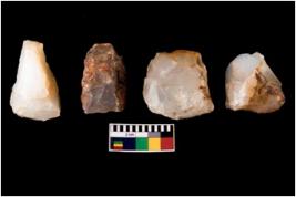| Description / विवरण | There are n-4 intact flake cores. There are multi directional irregular scar pattern on both dorsal and ventral face of the cores. |