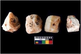 | Description / विवरण | Four worked utilised cores from which blades removed from almost all the sides. |