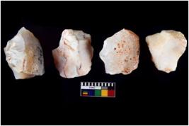 | Description / विवरण | Four worked utilised cores from which blades removed from almost all the sides. |