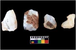 | Description / विवरण | Four utilised worked cores with sharp edges. Flakes have been removed from few sides. |