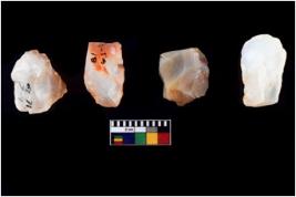 | Description / विवरण | Four worked utilised cores from which blades removed from almost all the sides. |
