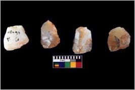 | Description / विवरण | Four worked utilised cores from which blades removed from almost all the sides. |