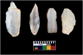 | Description / विवरण | Four utilised worked cores with sharp edges. Flakes have been removed from few sides. |