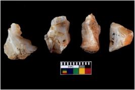 | Description / विवरण | Four utilised worked cores with sharp edges. Flakes have been removed from few sides. |