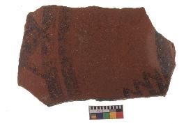 | Description / विवरण | Specimen of potsherd with decorative geometric painting, Type Black on Red Ware . |