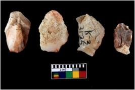 | Description / विवरण | Four utilised worked cores with sharp edges. Flakes have been removed from few sides. |