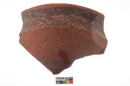 | Description / विवरण | Specimen of potsherd with decorative geometric Net Pattern painting, Type Black on Red Ware . |