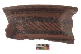 | Description / विवरण | Specimen of potsherd with decorative geometric Linear Pattern painting, Type Black on Red Ware . |