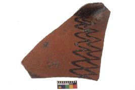 | Description / विवरण | Specimen of potsherd with decorative zigzag painting, Type Black on Red Ware . |