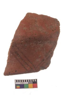 | Description / विवरण | Specimen of potsherd with decorative geometric painting, Type Black on Red Ware . |