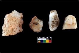 | Description / विवरण | Four utilised worked cores with sharp edges. Some of them are tapering at one end. Removal of flakes from few sides. |