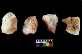 | Description / विवरण | Four utilised worked cores with sharp edges. Some of them are tapering at one end. Removal of flakes from few sides. |