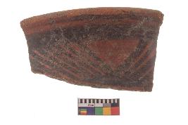 | Description / विवरण | Specimen of potsherd with decorative geometric painting, Type Black on Red Ware . |