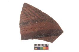 | Description / विवरण | Specimen of potsherd with decorative geometric Linear Pattern painting, Type Black on Red Ware . |