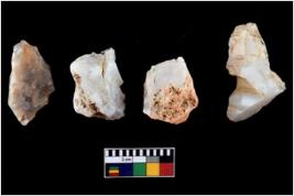 | Description / विवरण | Four utilised worked cores with sharp edges. Some of them are tapering at one end. Removal of flakes from few sides. |
