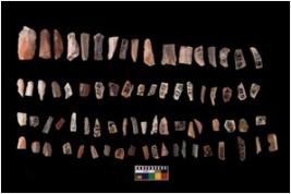 | Description / विवरण | There are n 76 Objects out of which 63 can be characterized as blades, the rest are debitage. Also, some points and trapezes do appear in the debitage. The microliths are in good working condition with some having tiny retouchings along the edges and some not. The surface show singular, to double to multiple flake scars, also, some appearing parallel along the edges. There are less visible signs of damage and the edges appear sharp. The blades vary in size from medium to small bladelets. |