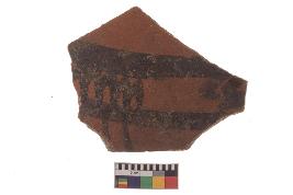 | Description / विवरण | Specimen of potsherd with decorative geometric painting, Type Black on Red Ware . |