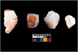 | Description / विवरण | Four worked utilised cores from which blades removed from almost all the sides. |