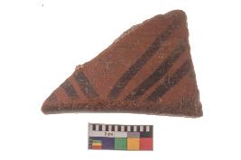 | Description / विवरण | Specimen of potsherd with decorative geometric painting, Type Black on Red Ware . |
