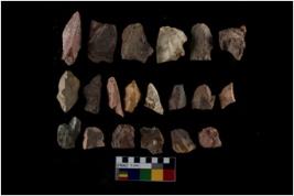 | Description / विवरण | There are n-20 of intact flake cores made up of Chert. Some of them have bulge of percussion, some are flat flakes and few are retouched. |