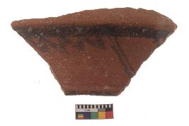 | Description / विवरण | Specimen of potsherd with decorative black pigment, Type Black on Red Ware . |