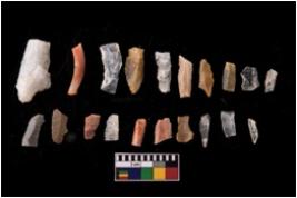 | Description / विवरण | There are n 20 objects of which 12 are chert and 8 are quartz, of which 10 can be characterized as blades and the rest debitages. A few of them do appear as points. The blades, on an average, are in average working condition with very less or no retouchings along the edges. they are characterized by singular to double to multiple flake scars on their surface. There are very little signs of damage. |