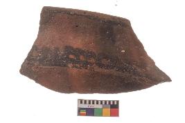 | Description / विवरण | Specimen of potsherd with decorative black pigment, Type Black on Red Ware . |