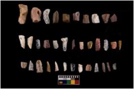 | Description / विवरण | There are n 36 objects of which 27 are chert and 9 are quartz, out of which, 18 appear as blades and the rest appear as debitages. The blades are, on an average, in a good working condition. There are very less or no retouchings. The edges in some are damaged and there are little visible signs of damage. They have singular to double scars along their surface and parallel scars along the edges in some microliths. They also have multiple scars on their surface. |