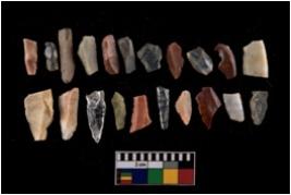| Description / विवरण | There are n 20 objects of which 13 are chert and 7 are quartz, out of which, 9 appear as blades and the rest appear as debitages. Though, there are a few points among them as well. The microliths, on an average, are in good working condition with some of them having a few retouchings along the edges. The microliths have single to double flake scars along their surface and some of them have parallel scars along the edges. There are very little signs of damage. |