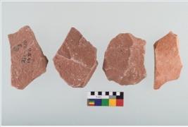 | Description / विवरण | Specimen of flake tools with prominent flaking marks. |