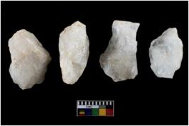 | Description / विवरण | Specimen of flake tools with prominent flaking marks. |