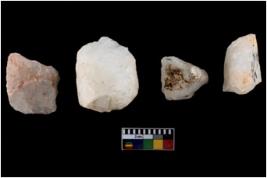| Description / विवरण | Specimen of flake tools with prominent flaking marks. |