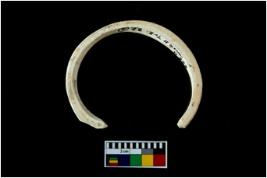 | Description / विवरण | A broken fragment of a undecorated shell bangle. It is creamish in colour with rectangular cross section. |