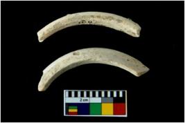 | Description / विवरण | There are n-2 broken fragments of undecorated shell bangles. They are creamish in colour with rectangular cross section. |