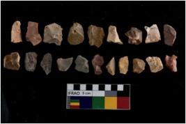 | Description / विवरण | There are n-20 of intact flake cores made up of Chert. Some of them have bulge of percussion, some are flat flakes and few are retouched. |