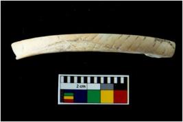 | Description / विवरण | A broken fragment of a decorated shell bangle. It is creamish in colour with rectangular cross section. |