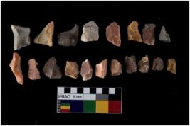 | Description / विवरण | There are n-20 of intact flake cores made up of Chert. Some of them have bulge of percussion, some are flat flakes and few are retouched. |
