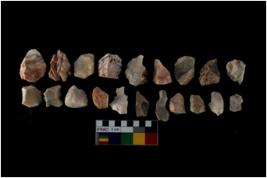 | Description / विवरण | There are n-20 of intact flake cores made up of Chert. Some of them have bulge of percussion, some are flat flakes and few are retouched. |
