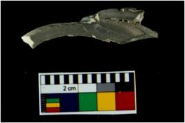 | Description / विवरण | A broken fragment of a decorated shell bangle. It is blackish in colour with rectangular cross section. |