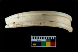 | Description / विवरण | A broken fragment of a decorated shell bangle. It is creamish in colour with rectangular cross section. |