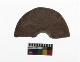 | Description / विवरण | A partially broken specimen of a teracotta toy-cart wheel with a hub and a plain surface on its both surface . The hub is of 15.13 mm in daimeter. |